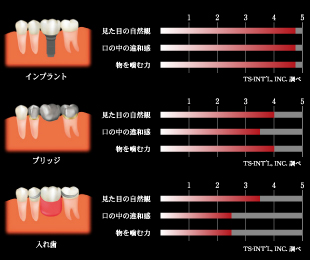失った歯を補うには、ブリッジや入れ歯という方法もありますので、それぞれを比較してみましょう。